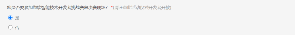 莅临现场的您,不仅能够获得精美礼品(决赛现场席位有限,先到先得哦~),还可以为喜欢的团队投票,嘉宾和您在内的观众将共同决定最终的冠亚季军!让我们一起见证卓越创意与落地应用。为了确保您可以获得本次挑战赛精美礼品,进入链接后,“职位”请选择“开发者”;“您是否要参加微软智能技术开发者挑战赛总决赛现场?”请选择”是”。