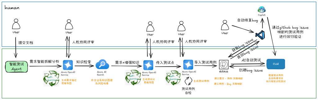 团队成员打趣道:“我们每天都会定个时间开会,但是会议一结束大家就像鱼儿回到了海里,再也抓不住了。”在工作、学习与黑客松比赛之间找到平衡,是对每位成员的极限考验。但也正是这种自驱力,让他们最终打造出一个可落地、具有闭环能力的 AI 项目——TestCortex,基于微软 Azure 的测试数字员工解决方案。